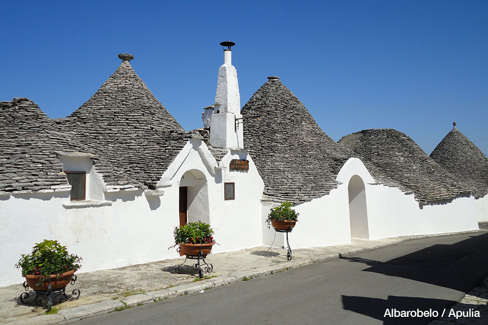 El Sur de Italia es quizás uno de los lugares más hermosos del mundo para conocer. Hicimos allí unos cuatro viajes en distintos años. En Sicilia circundando el volcán Etna con la Ferrovía, visitar Taormina con su anfiteatro, recorrer la ciudad barroca de Noto y la ciudad griega de Siracusa y las dos grandes ciudades de Palermo y Catania. En la parte del «taco de la bota» de Italia estuvimos Albarobello, en el fantástico castillo de Castel Del Monte (del siglo XIII) y en las cuevas-habitaciones en las rocas calcáreas de Matera. Los recorridos por las rutas secundarias, con sus antiguas construcciones cónicas llamadas «Trulli», que se ven cuando se viaja por la campiña, son maravillosos.